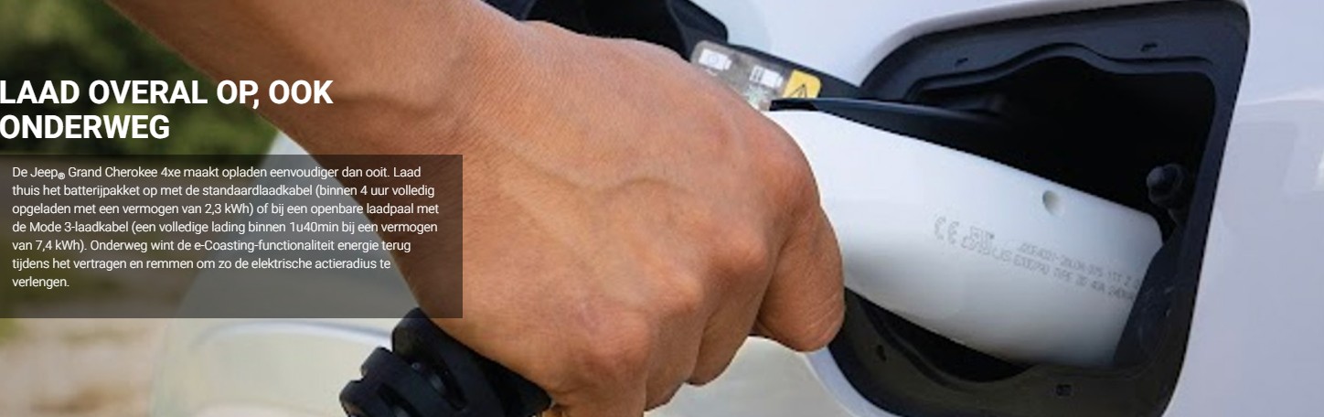De Jeep® Grand Cherokee 4xE wordt aangedreven door twee high-performance aandrijflijnen: een 2-liter benzinemotor met turbocharger (272 pk) en een nieuwe elektromotor van 145 pk. Deze elektromotor biedt een comfortabele actieradius tot 51 km. Worden beide krachtbronnen met elkaar gecombineerd , dan bedraagt het totale vermogen maar liefst 380 pk.