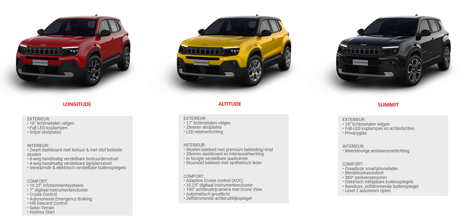 - De EV is leverbaar als Longitude, Altitude en Summit uitvoering