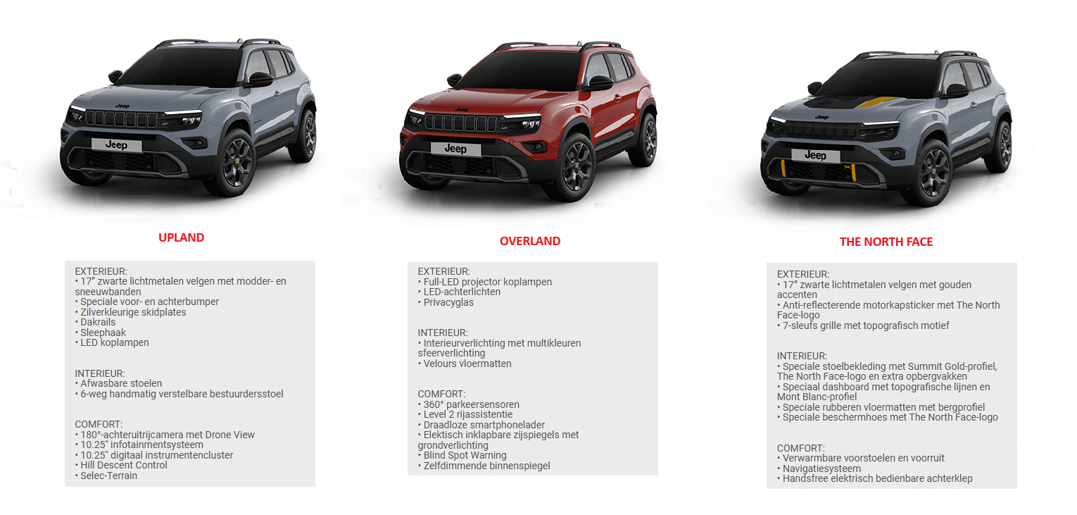 - De 4xe e-Hybrid 4WD is leverbaar als Upland, Overland en The North Face uitvoering
