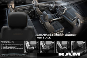 De styling is bepalend of de RAM 1500 aan uw voorstelling voldoet. Omdat wij over een eigen carrosserieafdeling beschikken zijn wij in staat om de styling stap voor stap aan uw wensen aan te passen. Wij kunnen uw RAM o.a. voorzien van andere kleurstelling zowel spuitwerk als wrapping met folie – striping – velgen & banden – laadbak- deksel of unit – speciale voorzieningen, accessoires enzovoorts.
