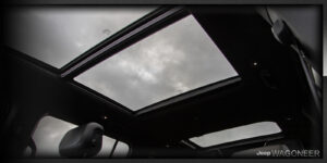 Beschikbaar drievoudig panoramisch zonnedak – Laat iedereen een sterke verbondenheid met de natuur ervaren. Met een simpele druk op de knop schuift het zonnedak naar binnen en nodigt frisse lucht, warme zon of heldere sterren uit in het interieur.*