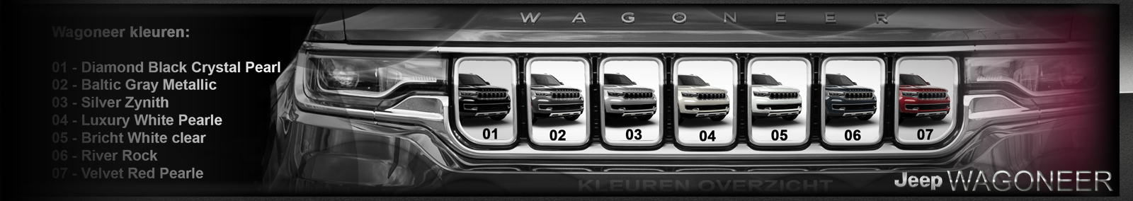 Omdat de Jeep Wagoneer keuzemogelijkheden zo uitgebreid zijn, hebben wij er voor gekozen om u onderstaand een samenvattende informatie, van een naar verwachting voor de Nederlandse markt geschikte uitrusting, te verstrekken. * = Standaard op Grand Wagoneer / optie op Wagoneer.