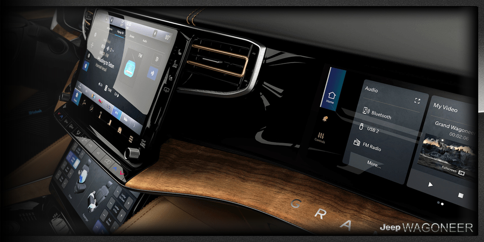 Wagoneer biedt een set prachtig vervaardigde schermen die zorgvuldig door de cabine zijn gemonteerd. Elk biedt unieke manieren om met uw voertuig om te gaan, van informatie tot entertainment.