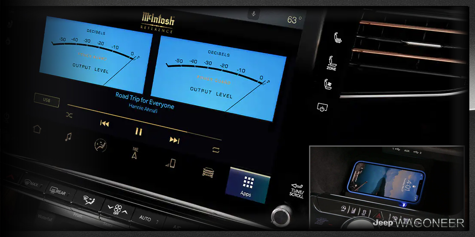 - Spraakherkenning is nu rechtstreeks geïntegreerd in de Grand Wagoneer-reeks, waardoor handsfree functionaliteit mogelijk is, zodat u zich kunt concentreren op de weg die voor u ligt. Geïntegreerde Apple CarPlay en Android Auto zijn nu voorzien van draadloze connectiviteit, waardoor passagiers draadloos telefoonapps kunnen projecteren terwijl telefoons veilig worden opgeborgen.