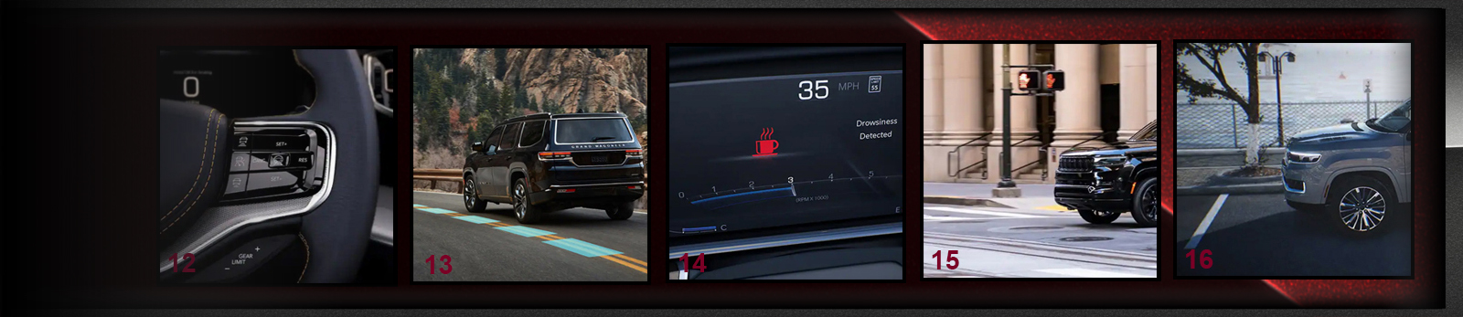 Voor de Grand Wagoneer zijn onder andere de volgende geavanceerde veiligheids- en beveiligingsfuncties beschikbaar: