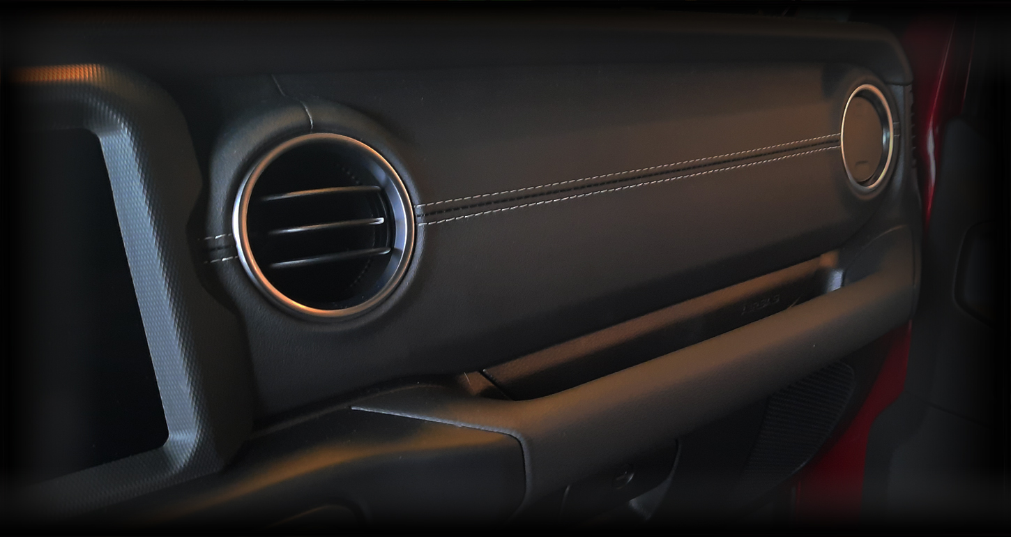 • Automatisch geregelde Dual Zone Airconditioning • LED ambient interieurverlichting • Stuurwiel met leder bekleed • Voorstoelen stof met “Rubicon” logo en blauwe stiksels.