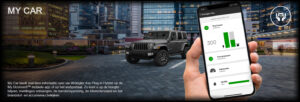 My Car biedt real-time informatie over uw Wrangler 4xe Plug-in Hybrid op de My Uconnect™ mobiele app of op het webportaal. Zo kunt u op de hoogte blijven, meldingen ontvangen, de bandenspanning, de kilometerstand en het brandstof- en accuniveau bekijken.