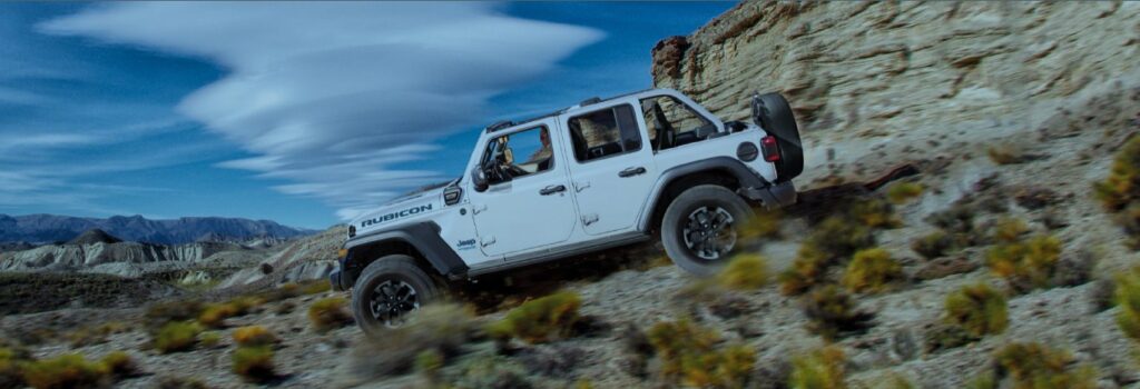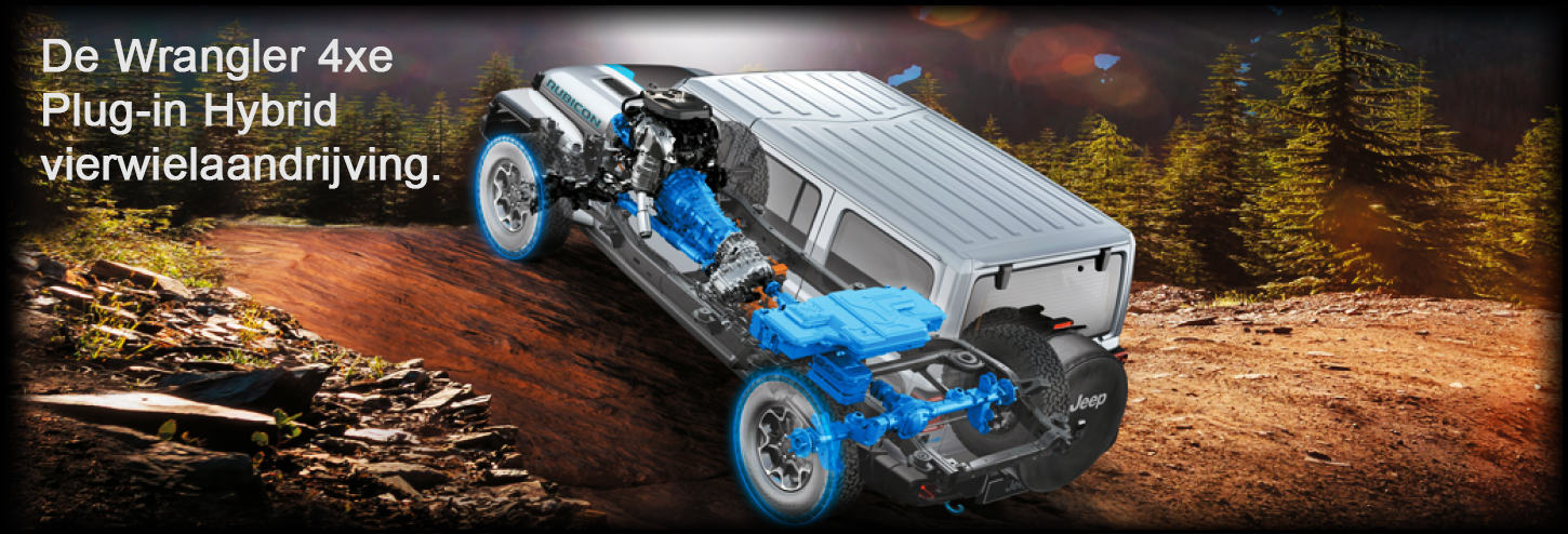 De volledig nieuwe Wrangler 4xe Plug-in Hybrid gaat alledaagse uitdagingen aan met de nieuwe 4xe hybride vierwielaandrijving, levert tot 380 pk aan gecombineerd vermogen en bereikt een acceleratie van 0-100 km/u in 6,4 seconden.