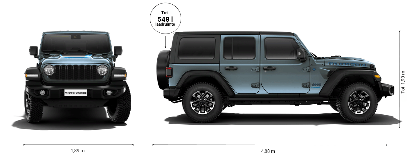 Robuust, veelzijdig en met een royale laadcapaciteit van 533 liter in een configuratie met 5 zitplaatsen. De nieuwe Wrangler 4xe Plug-in Hybrid past zich aan uw levensstijl aan en begeleidt u bij ieder avontuur in de stad en off-road.