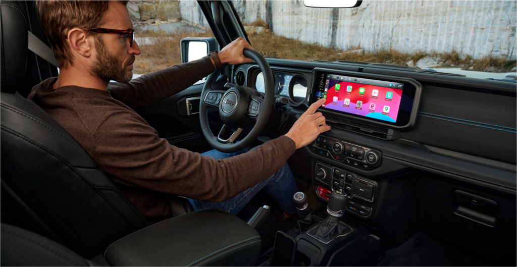 Met de nieuwe Jeep® Wrangler 4xe Plug-in Hybrid kunt u veilig verbinding maken met uw smartphone, terwijl u geconcentreerd blijft op de weg.